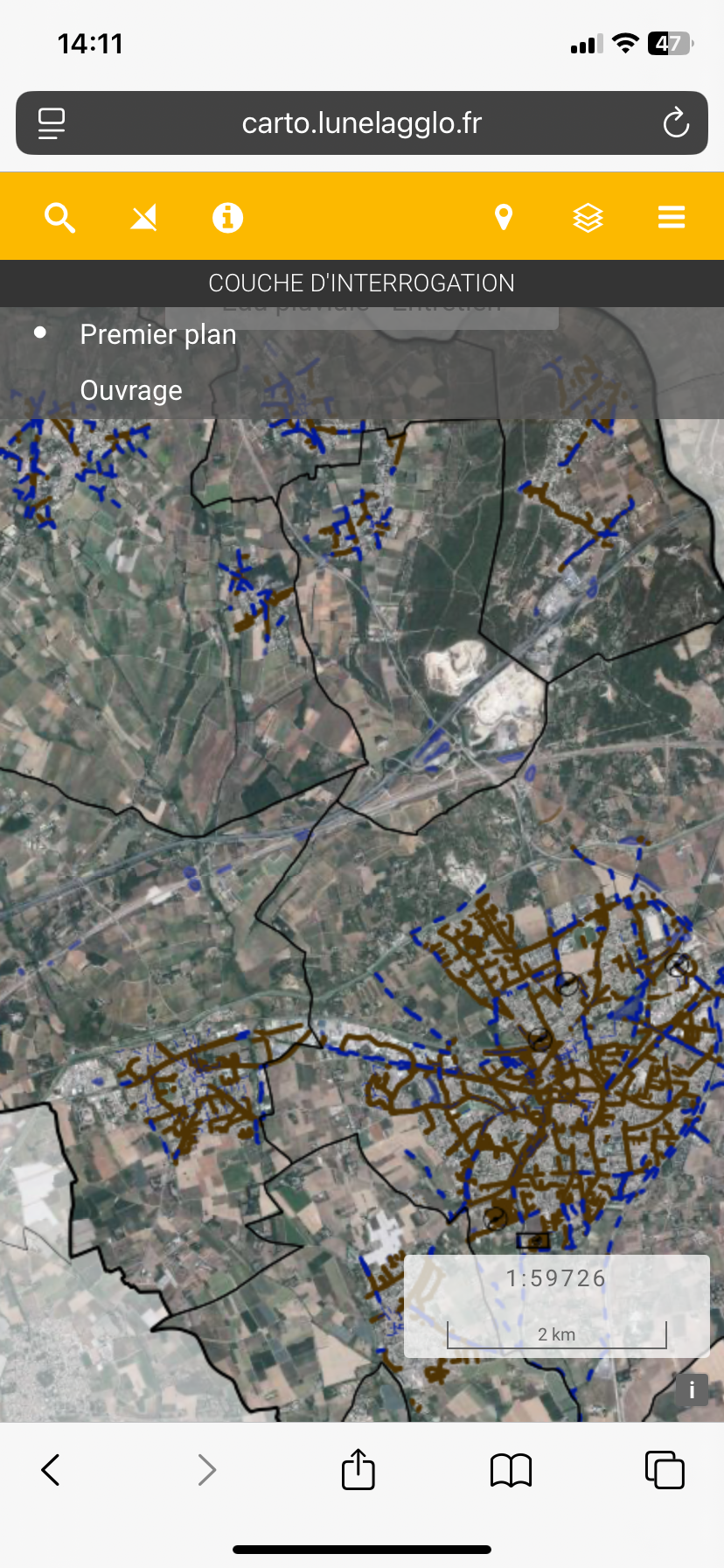 Dans le menu du haut cliquer sur ℹ️ pour éventuellement choisir la couche que vous souhaitez interroger en cliquant sur un objet